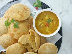 -In a wok,heat cooking oil (180°C - 190°C) & fry kachori on high flame for 3-4 seconds only & take out,put them on grill rack & let it cool.