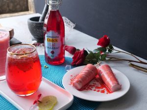 -Kulfi per lal sharbat drizzle ker ka serve karein!