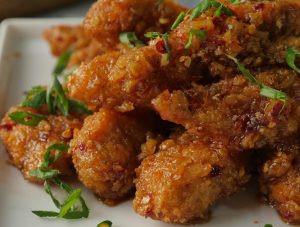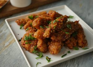 Tayyar sauce mein fried chicken dal ker ache tarhan coat ker lein.