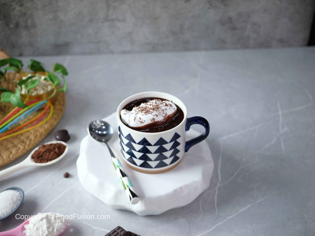 A chocolate lover’s dream in a mug! Quick to make, delicious to enjoy, and perfect for winter nights. #happycookingtoyou #foodfusion #araywahh #winter #mugcakerecipe #hotchocolate