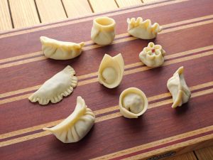 -Make a set of 10 dumpling wraps, place parchment paper in between, place in an air-tight container with a paper towel on top (it will help absorb moisture).