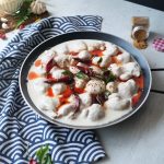-In a bowl,add lukewarm water,fried baray and let them soak for 6-8 minutes then take out from water and squeeze gently to remove excess water.