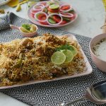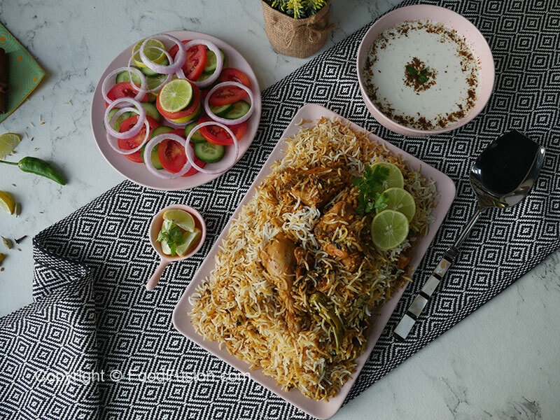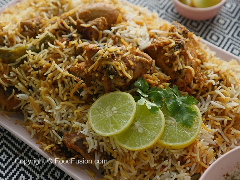 Add mint leaves,boiled rice,remaining prepared spice mix,fried onion,remaining boiled rice and ghee,cover & cook on high flame to build up the steam (4-5 minutes) then turn flame to low and steam cook for 25-30 minutes.