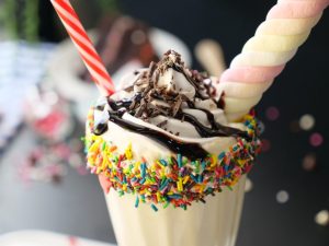 -Add prepared shake,garnish with whipped cream,chocolate syrup,chocolate shavings,marshmallow stick & serve!