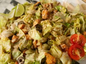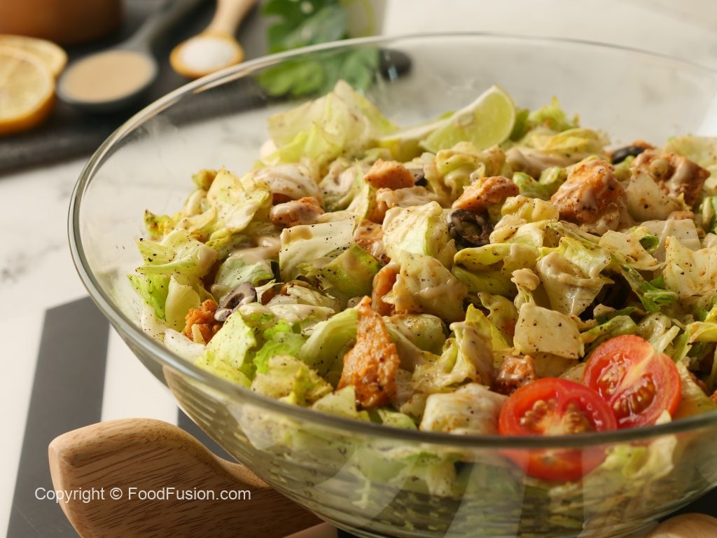-In a bowl,add chopped iceberg lettuce,olives,pickled jalapenos,sumac powder,cinnamon powder,lemon juice,mix & toss well.