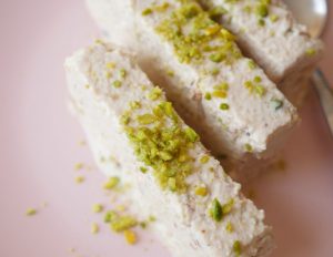 Now pour cooked king kulfa in 12 x 4” loaf pan or into kulfi molds (makes 6),cover with cling film & refrigerate for 1 hour to cool down completely then freeze for at least 8 hours or overnight.
