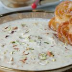 In a serving bowl,add rabri,sprinkle almonds,pistachios & refrigerate until chilled.