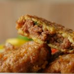 Karhai mein cooking oil garam karein aur halki ancch per kabab ko dono sides sa golden brown hunay tak fry ker lein aur pheetay huway anday ko kabab ki dono sides per daltey rahein.
