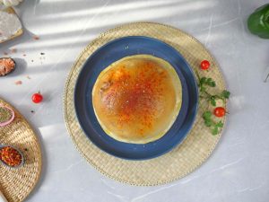 -Take 90g dough, make a ball, dust some dry flour & roll out with the help of a rolling pin.