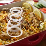 Ab dissolve zarda ka rang,fried pyaz aur cooked seekh kabab dal dein.