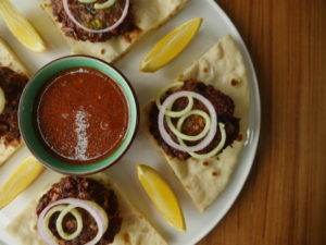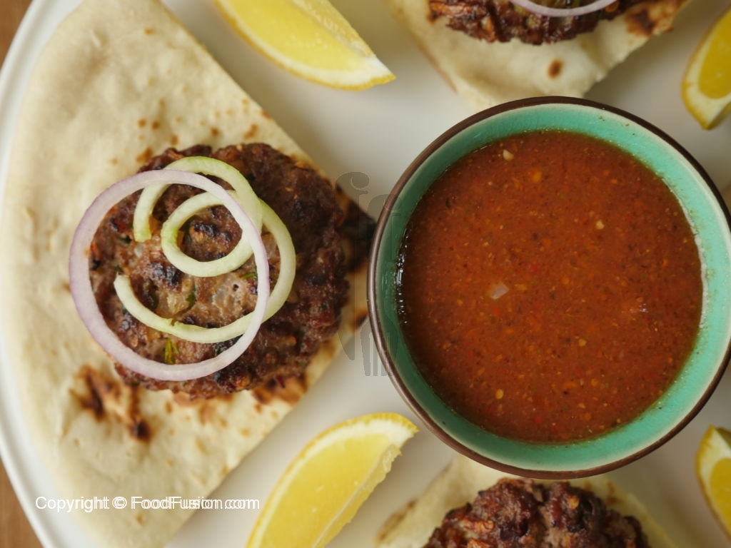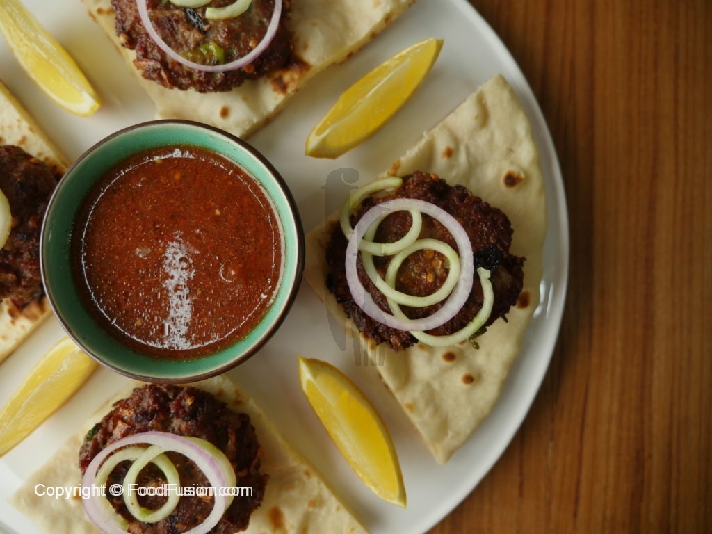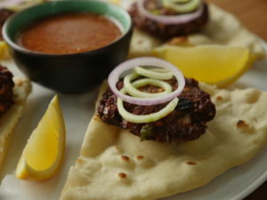 Kachay Qeema ka Kebab With Naan & Tomato Chutney