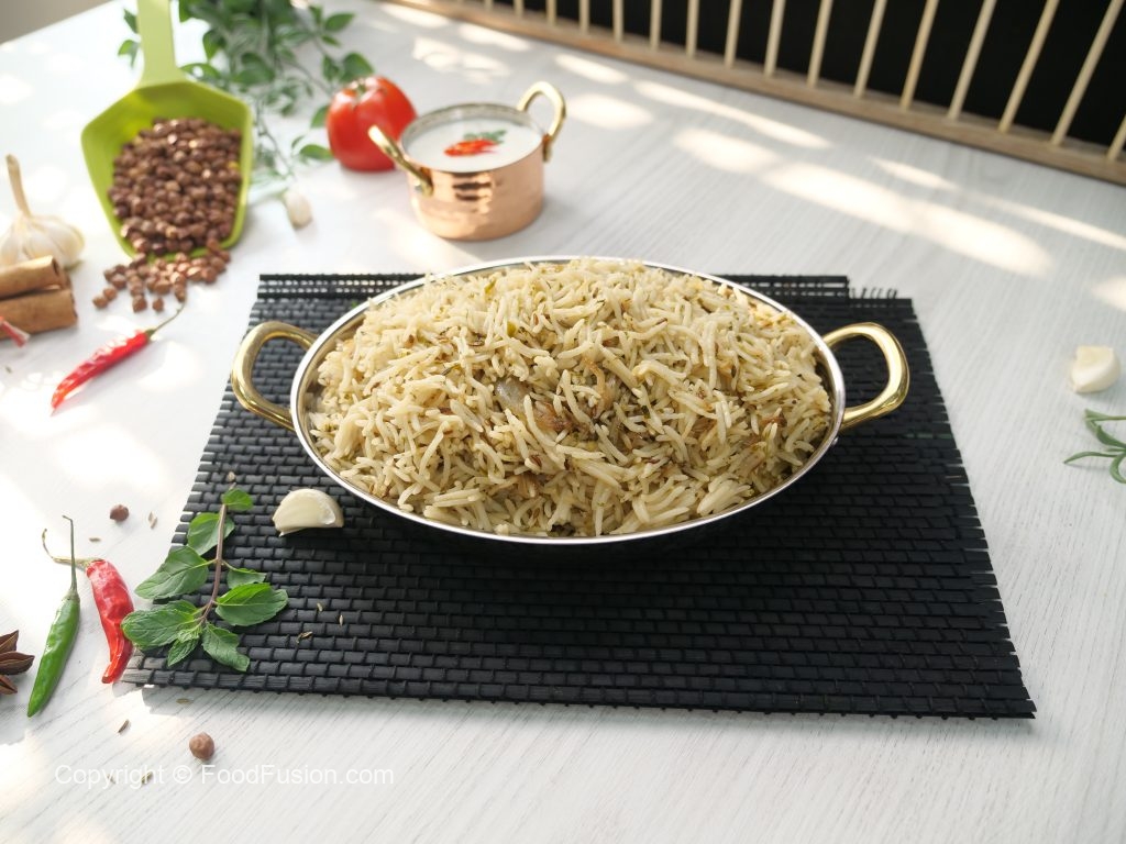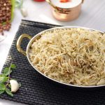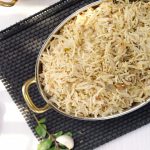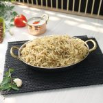-Add rice,mix well & cook on high flame until water is reduced (3-4 minutes),cover & cook on low flame for 8-10 minutes.