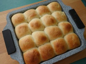 Spray water on the loaves lightly then cover the top of the loaves with rolled crust.