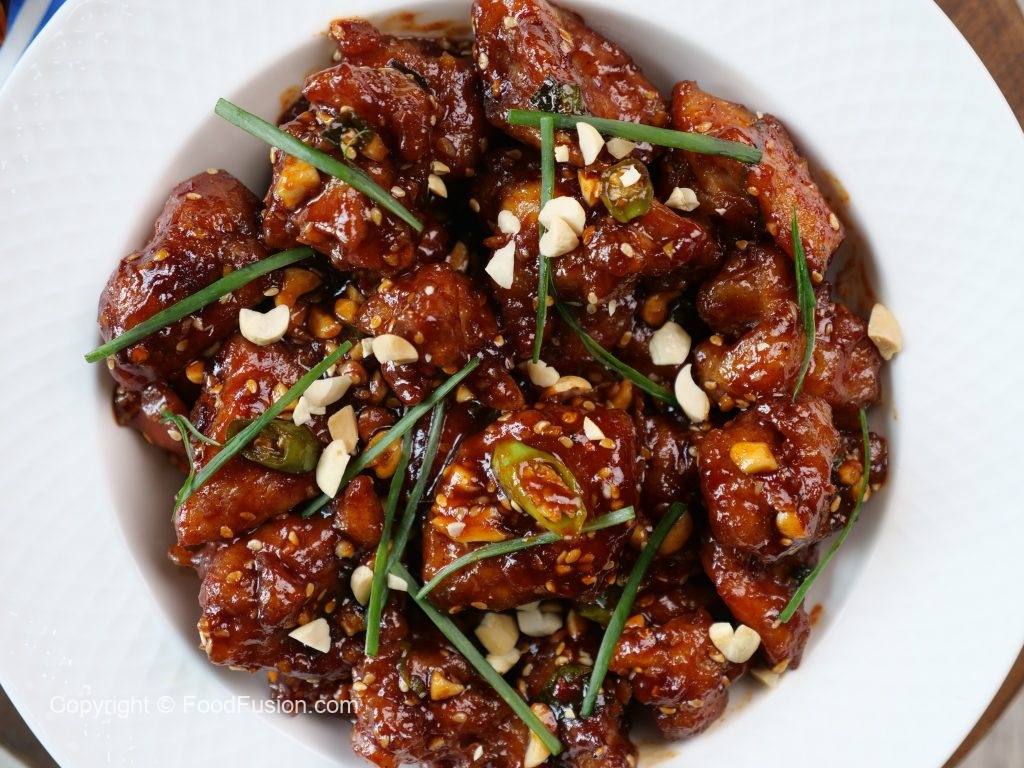-In a wok,heat cooking oil & fry chicken until light golden,take out chicken pieces & let it rest for a minute & fry again until crispy & set aside.