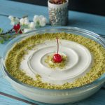 Bowl mein cream,powdered cheeni aur vanill essence dal dein aur fluffy hunay tak beat ker lein.