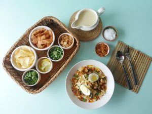 -Serving dish mein hara pyaz leaves aur popcorn chicken dal ker serve karein!