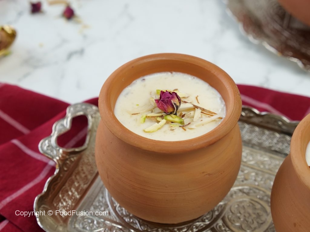 -Badam,pista aur dried roses sa garnish ker lein.