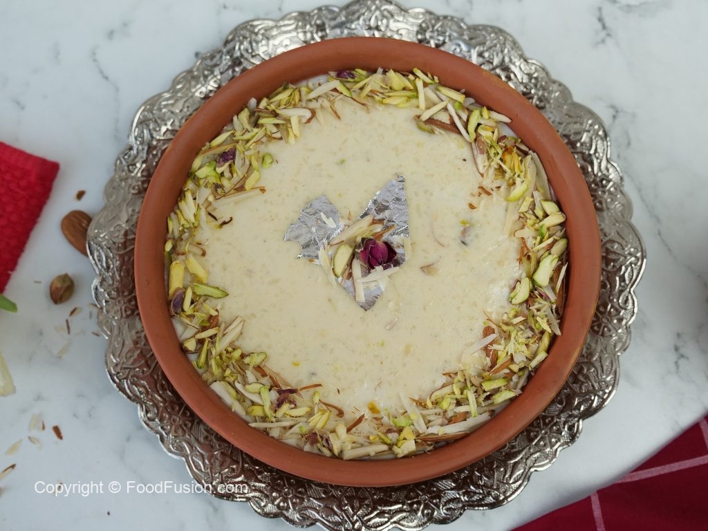 -Garnish with almonds,pistachios & dried roses.
