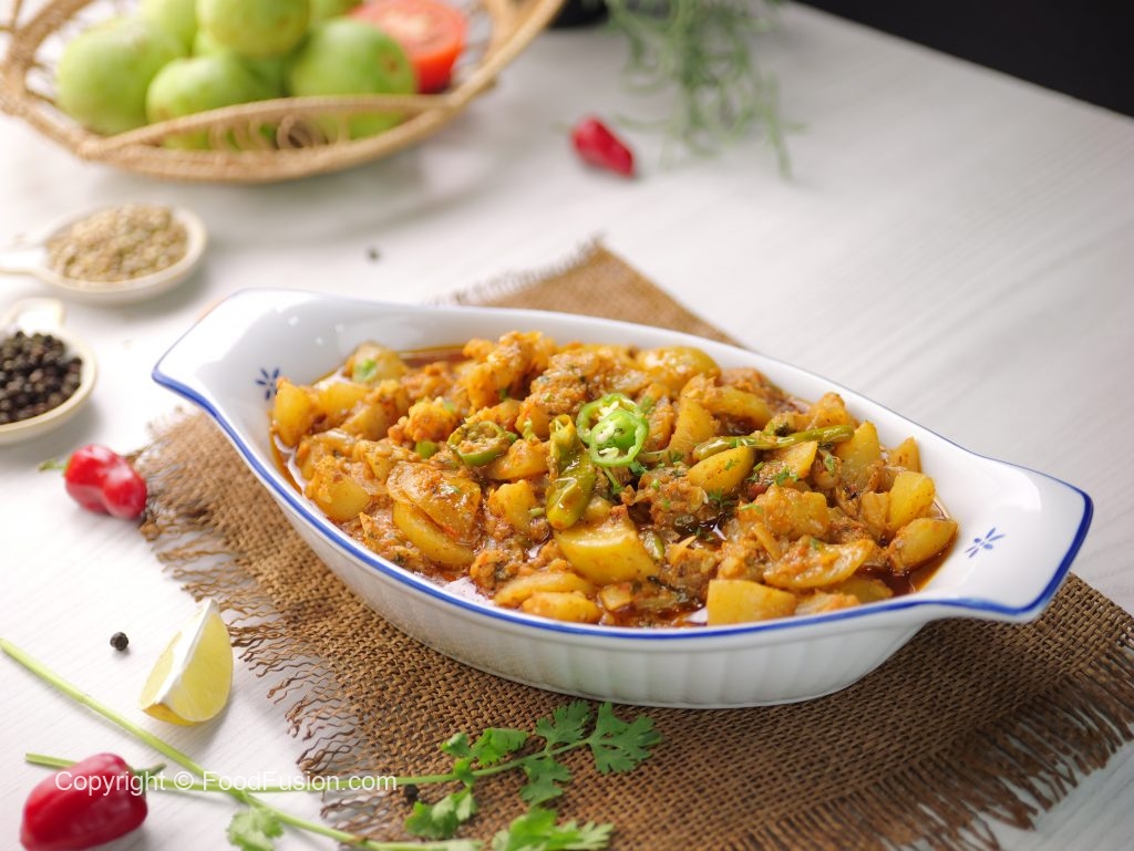 -Adrak,lehsan,hari mirchein aur namak dal ker ache tarhan mix karein aur 6-8 minutes kliya paka lein.
