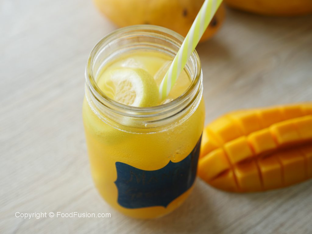 In bottle,add prepared green tea and ¼ Cup of mango puree,lemon juice and mix well.