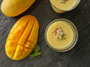 Garnish with mango cubes,dry nuts and refrigerate until chilled.