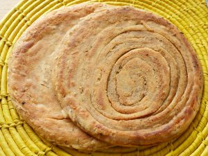 Sprinkle flour and spread the dough with the help of the rolling pin (makes 4).