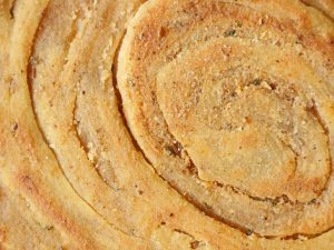 Make a hole in the center of the dough and fold carefully,cut the dough from the side and roll it like swiss roll.