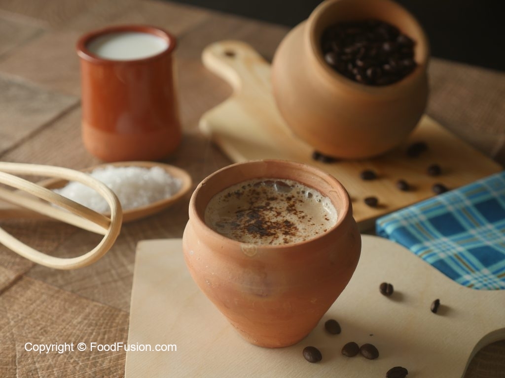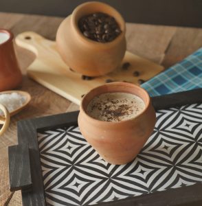 Heat the clay pot on flame. Place the clay pot in a pot & add tandoori coffee in it.