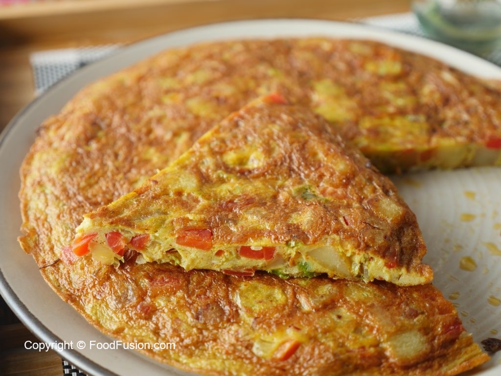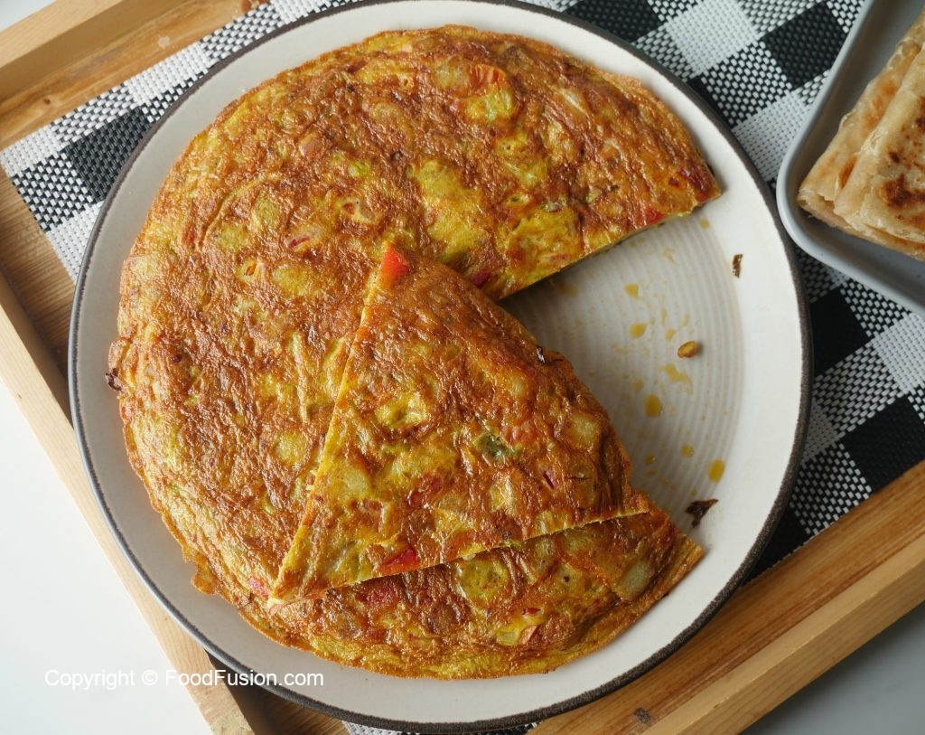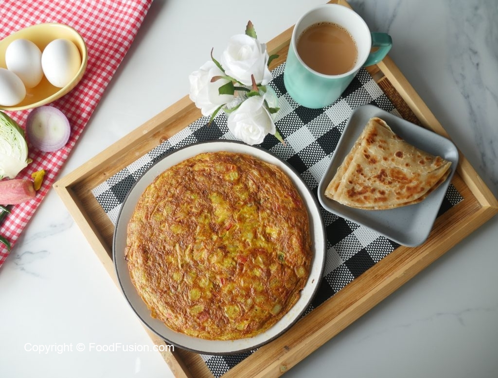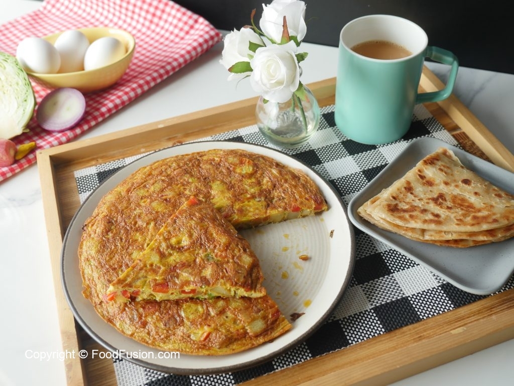 Frying pan mein cooking oil aur anday ka mixture dal ker evenly pheela mein aur dhak ker halki ancch per 5-6 minutes kliya paka lein phir flip karein aur 2-3 minutes kliya paka lein & serve karein!