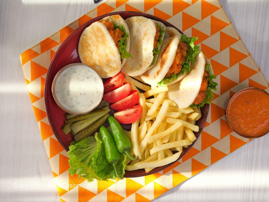 -Make a pocket in the pita with the help of a knife, fill the pita pocket with lettuce, cooked chicken, and prepared ezme sauce.
