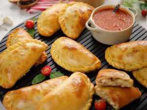 -Calzones ko baking tray lined with butter paper per rakh dein.