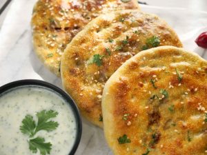 -Apply butter,sprinkle fresh coriander & serve with raita.