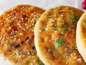 -Apply egg on naan & sprinkle sesame seeds.