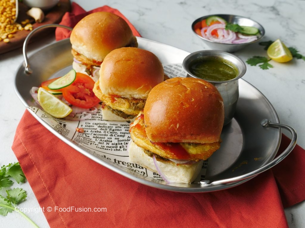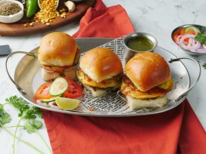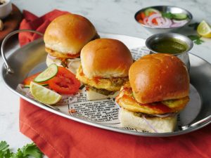 Mini bun kababs ko chutney & pyaz rings ka saath serve karein.