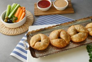 Take a dough,sprinkle flour and roll out with the help of rolling pin and cut with the help of the cutter.