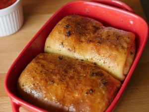 Place stuffed bread in baking tray & let it porof for 30 minutes.