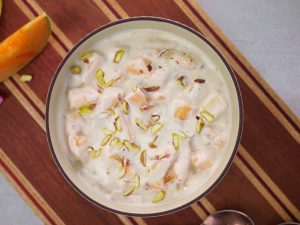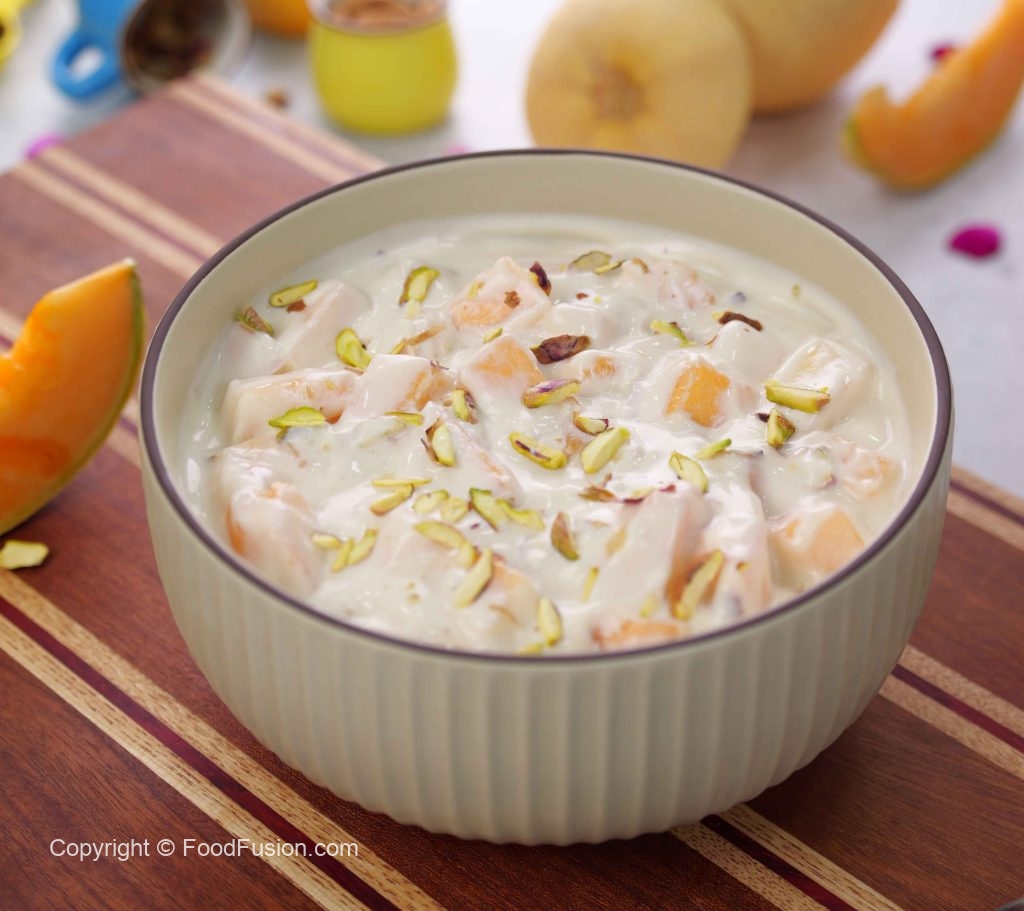-Add muskmelon cubes,pistachios,almond & mix well.