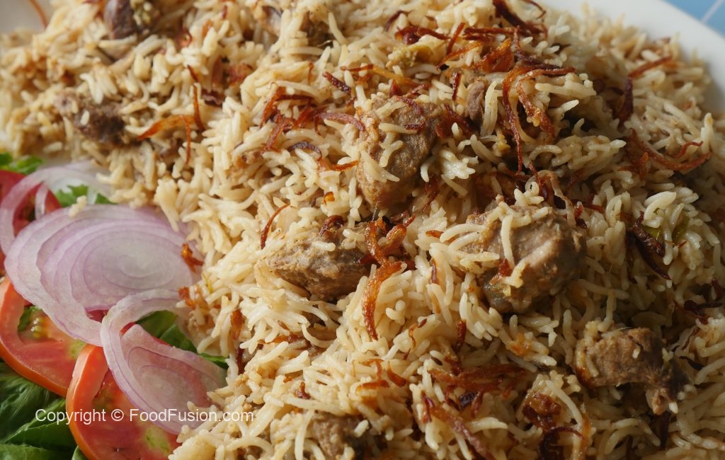 Now add cooked mutton,fried onion,cover and cook on low flame for 20 minutes.