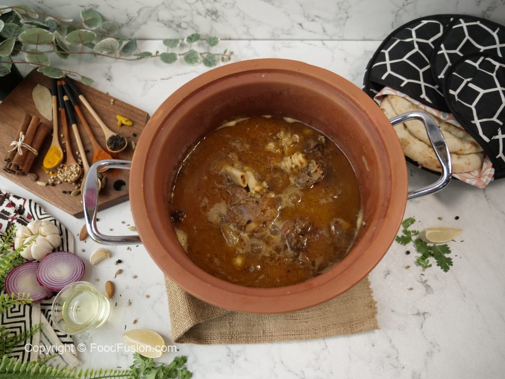 Mutton paya mein namak,badi elaichi,laung,sabut kali mirch,darchini,tez patta,adrak lehsan paste ayr garam pani dal ker ache tarhan mix karein aur ubal anay ka bad dhak dein aur halki ancch per gul janay tak paka lein (2-3 hours).