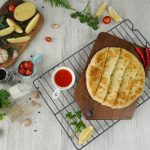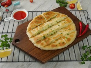 -Rolled dough ka center mein mozzarella cheese,tayyar mashed potato mixture aur mozzarella cheese dal dein.