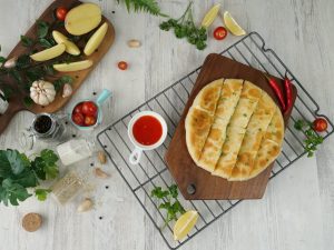 -Lehsan powder,namak,dried parsley aur mayonnaise dal ker ache tarhan mix karein aur piping bag main dal ker side per rakh dein.