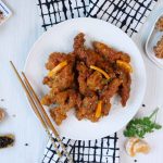 -Ab marinated chicken ko dry flour mixture mein coat ker lein phir pani mein sip karein aur dubara dry flour mixture mein coat ker lein.