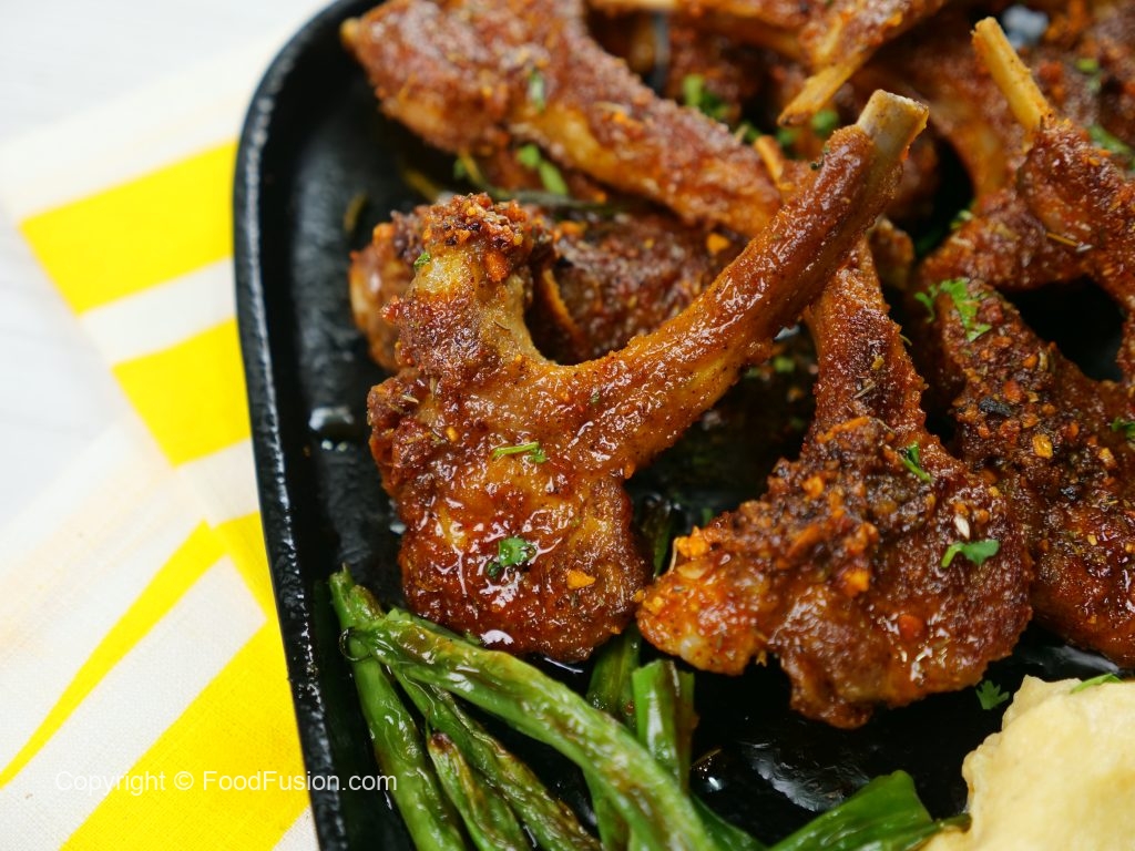 -Coat boiled mutton chops in prepared spice mix & set aside.