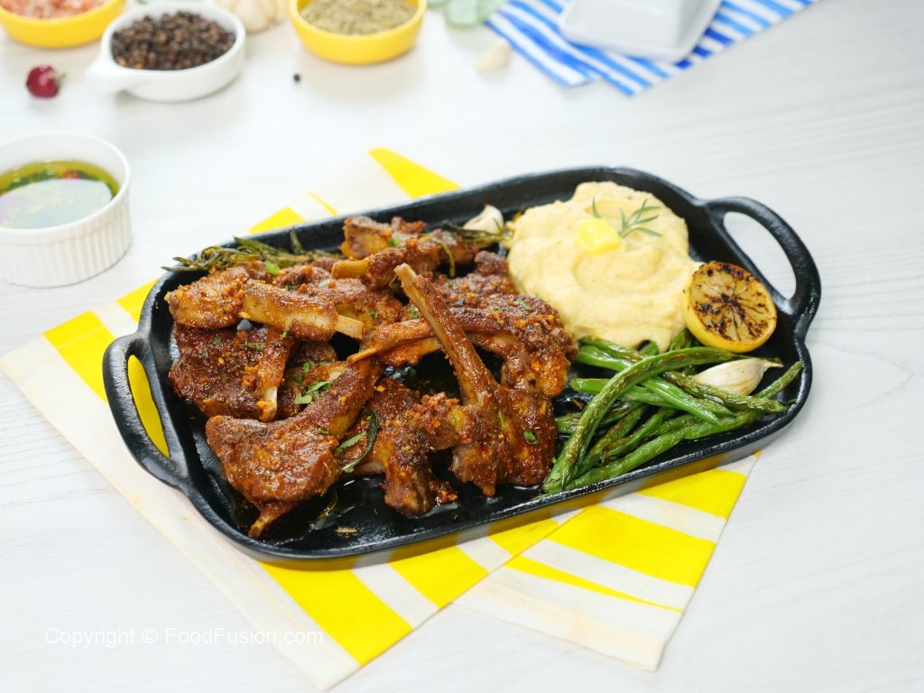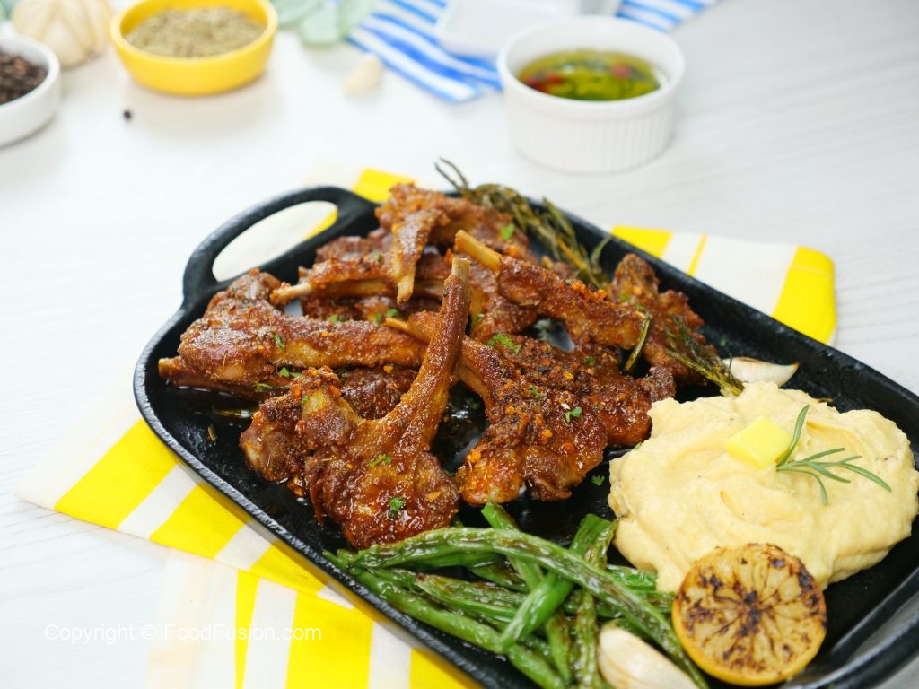 -Spiced makhan ko mutton chops per pour ker lein aur hara dhania sa garnish ker ka mashed potatoes & sautéed vegetables ka saath serve karein.