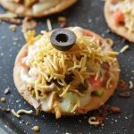 On papri,add & spread pizza sauce,cooked chicken,capsicum,onion,tomato,cheddar cheese, mozzarella cheese,red chilli crushed,dried oregano,cover & cook on low flame until cheese melts (2-3 minutes).