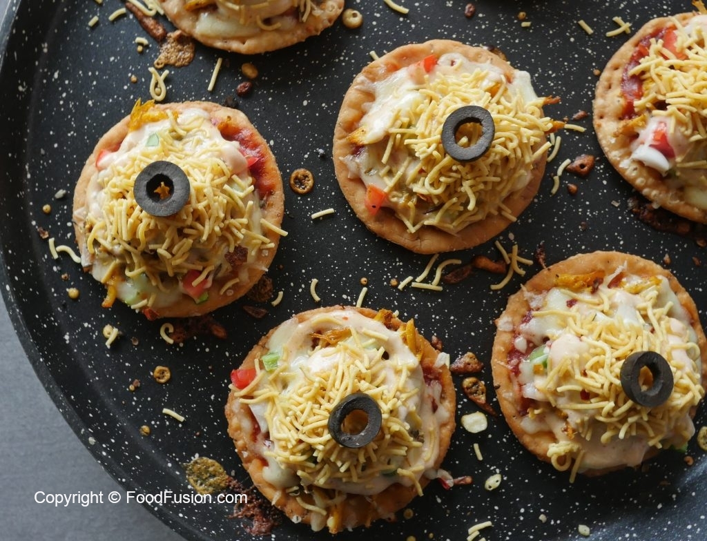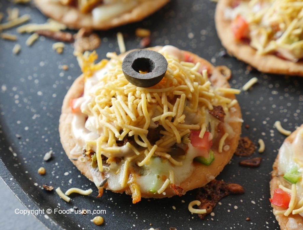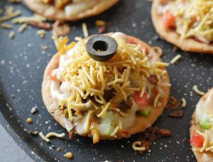 Drizzle prepared yogurt mayo sauce,nimco sev and black olive & serve!