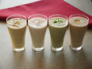 -In a blending jug,add peaches,water,blend well then strain well & set aside.