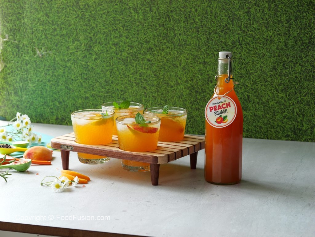 -Peach squash can be stored for up to 1 month in refrigerator (Yield: approx. 2 litre).