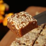 -On a greased mold,add peanuts,prepared barfi & spread evenly.