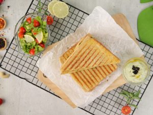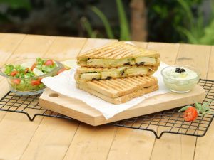 -Place the sandwich on a panini press grill & grill at 200C for 3-4 minutes or grill in pan until done from both sides.